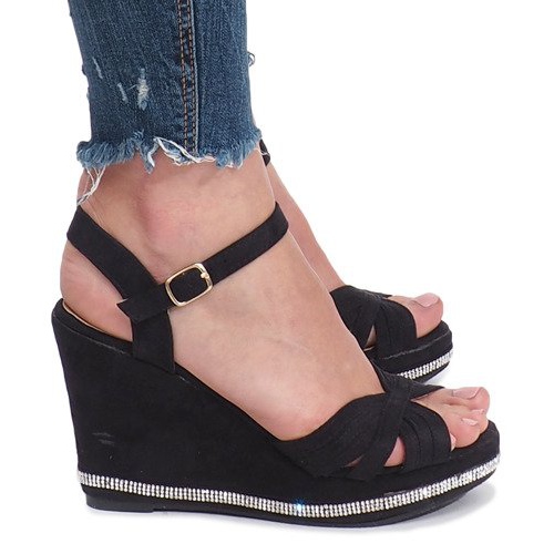 The 10 cm wedge height and 2.5 cm platform create a harmonious whole that optically lengthens the legs while ensuring comfort at every step. Additionally, zircons and jets introduce a touch of glamour, perfectly fitting into current trends.