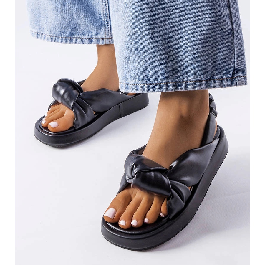 Classic, black Clarice flip flops combine lightness and convenience with subtle elegance. Thanks to the low wedge (4 cm), they add a discreet height, maintaining comfort of use throughout the day. Perfect for the summer - for work, for a walk or meeting with friends.