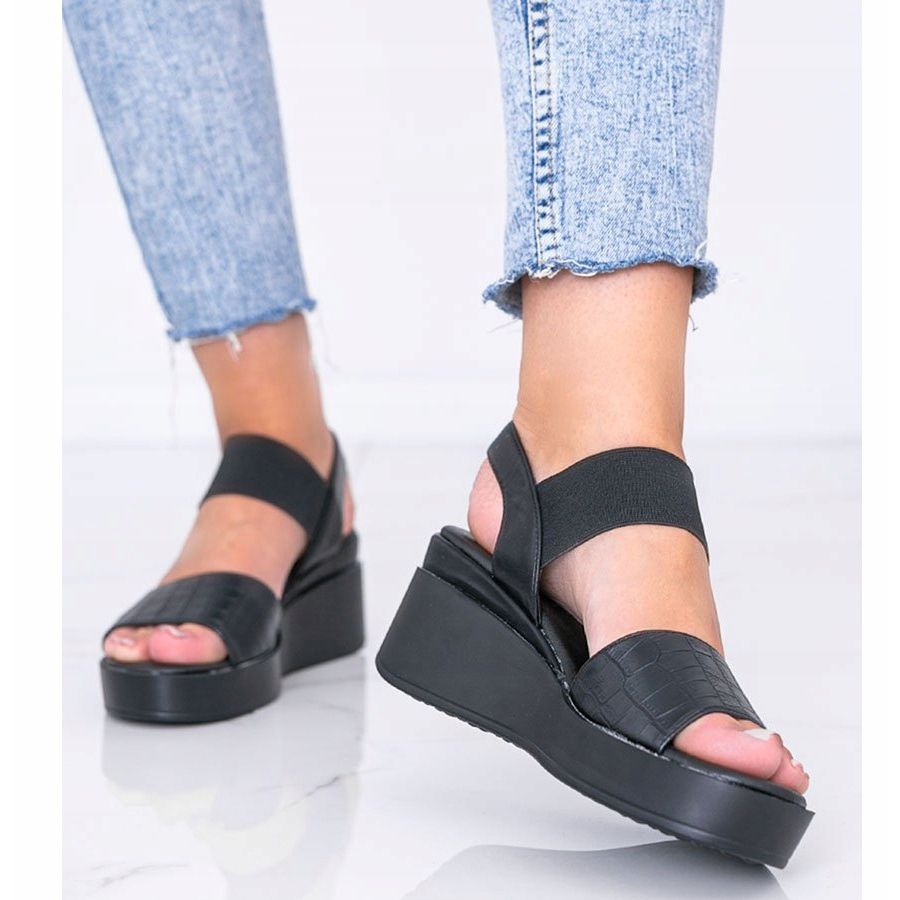 The black Wins wedge sandals are a great choice for women who value comfort and style in everyday styling. These slip-ons feature an elastic band that makes them incredibly easy to put on and take off. The classic black color, combined with a front strap in a fashionable snakeskin style and an elegant wedge, creates a harmonious whole, perfect for summer days.