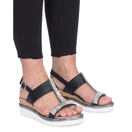 These sandals have a 5.5 cm high wedge, which not only adds a few centimeters of height, but also stability when walking. The zircons and jets used to decorate the footwear attract attention and add elegance. Without a toe and on a practical buckle - these sandals will fit into any summer styling, from everyday to more elegant.