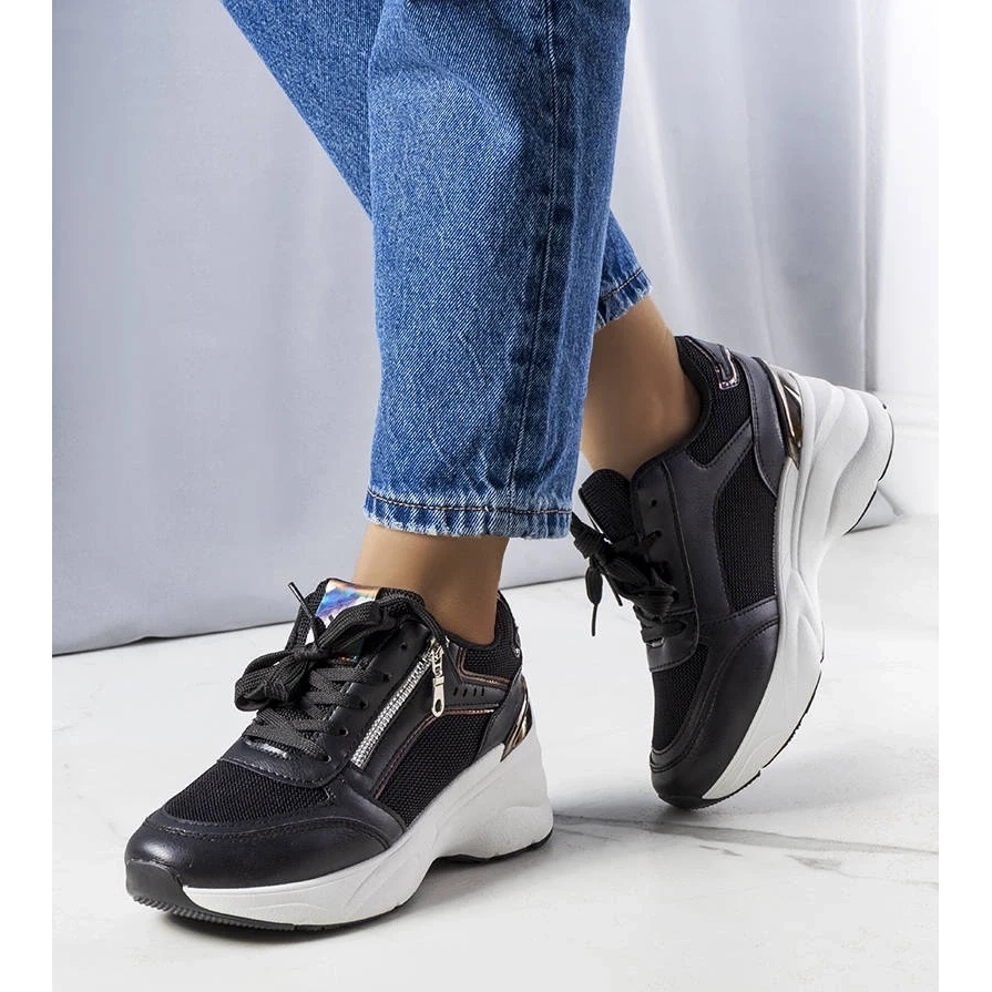 Black sneakers for stacey wedges from d/GMR are the perfect choice for women who value both comfort and fashionable appearance. These stylish shoes perfectly emphasize the figure, thanks to which they can add confidence in every situation. Made of high quality fabric, they adhere perfectly to the foot, ensuring comfort all day.