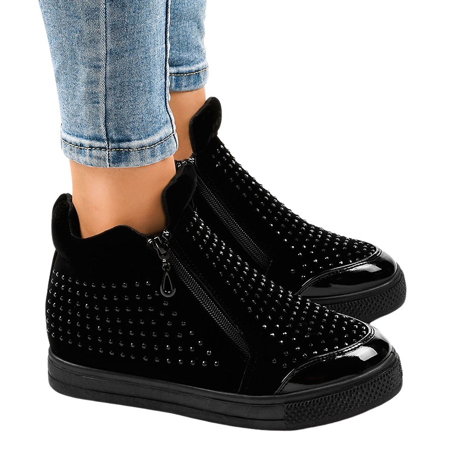 Discover the unique black R51-1 wedge sneakers that will become an inseparable element of your wardrobe. Made of suede-like material, these stylish shoes combine comfort and elegance. Fashionable details in the form of black studs and practical zippers placed on the front of the upper add character and make you always stand out in them.