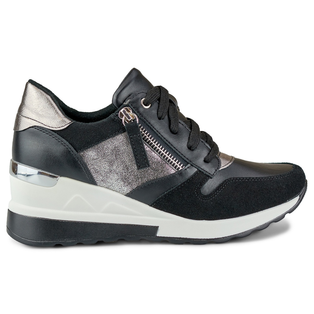Modern, feminine and comfortable - black sports shoes on the wedge from the Keeshoes collection combine a sporty character with a subtle increase. Perfect for urban stylizations, every day and outputs, when you want to add a few centimeters without giving up comfort.