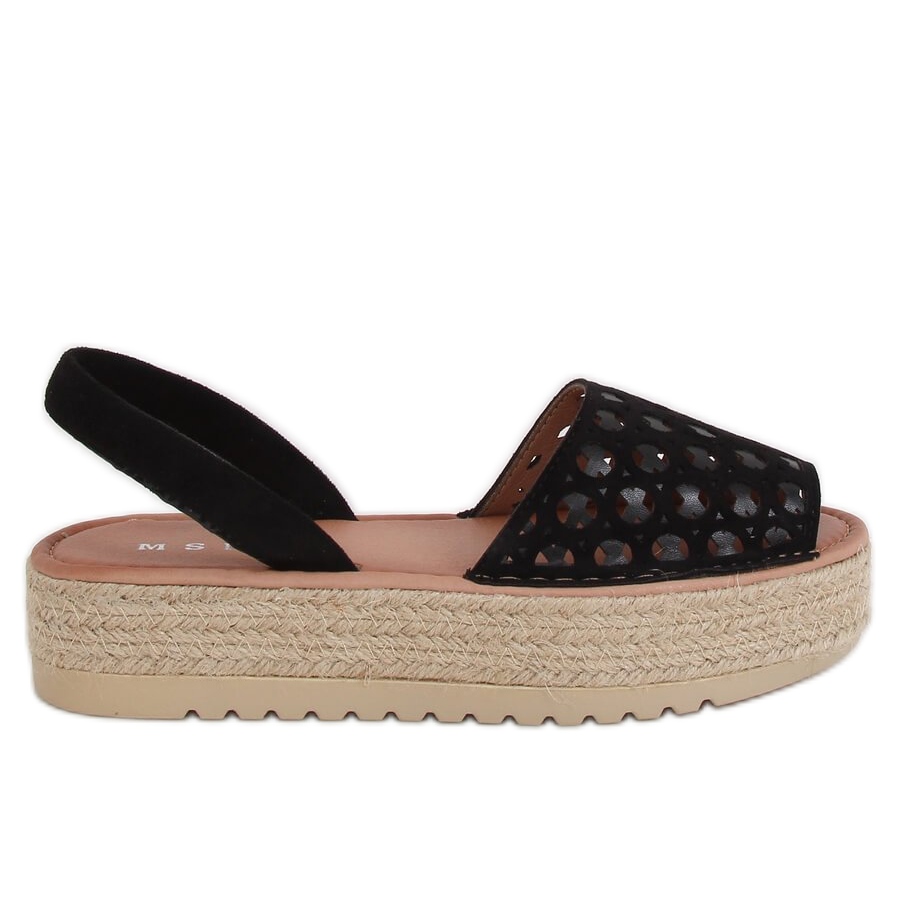 Inna marka Black WH931 Black openwork espadrilles sandals