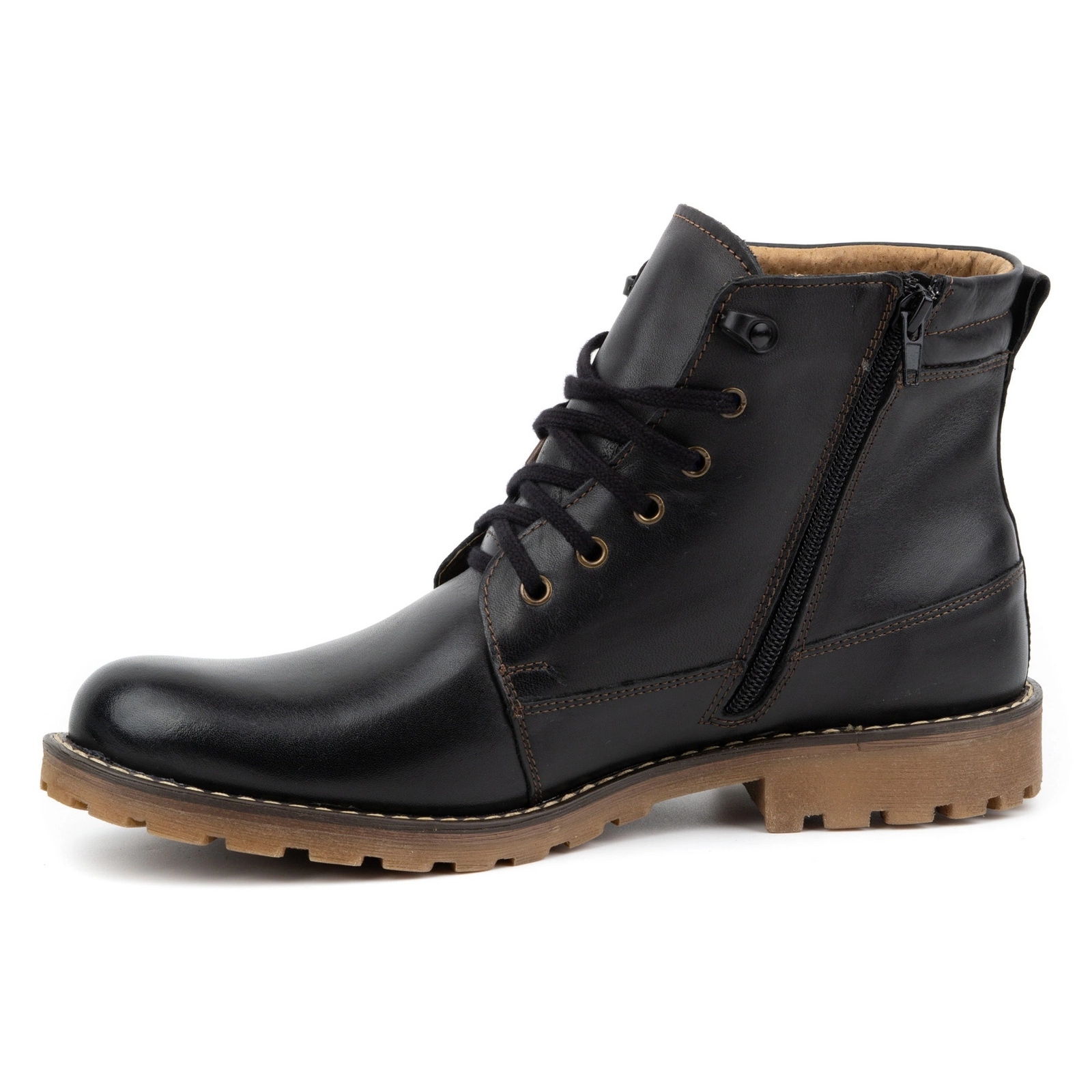 Elegant, men's Mario Pala 754 boots are a proposal for people who value timeless appearance and practical solutions for the winter. The top is made of the highest quality natural leather, the interior padded with natural wool ensures effective insulation against frost and a pleasant feeling of warmth. A solid, well -profiled sole made of high -quality material guarantees stability on various surfaces. The model is equipped with lacing for adjustable fit and a side lock, which facilitates quick installation without having to bind each time.