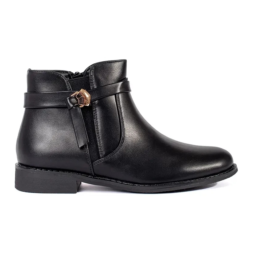 Inna marka Black women's ankle boots with a low heel strap