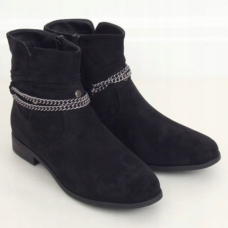 Discover elegance and comfort with the black suede ankle boots 688-201 Black. These unique flat shoes impress with their fashionable design, which perfectly fits into everyday stylings. The graceful upper, which wraps around the ankle, is decorated with subtle straps and chains, which gives them a unique character.