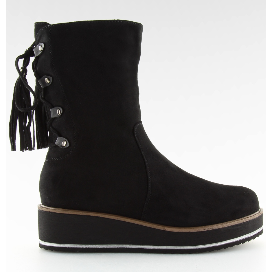 Discover elegance and comfort in one with the TH17-7 women's ankle boots in black. These stylish high-top shoes are the perfect choice for everyday wear, combining fashionable design with functionality. Their unique charm lies in the decorative lacing at the back, which is finished with fringes, adding a unique character to the whole.