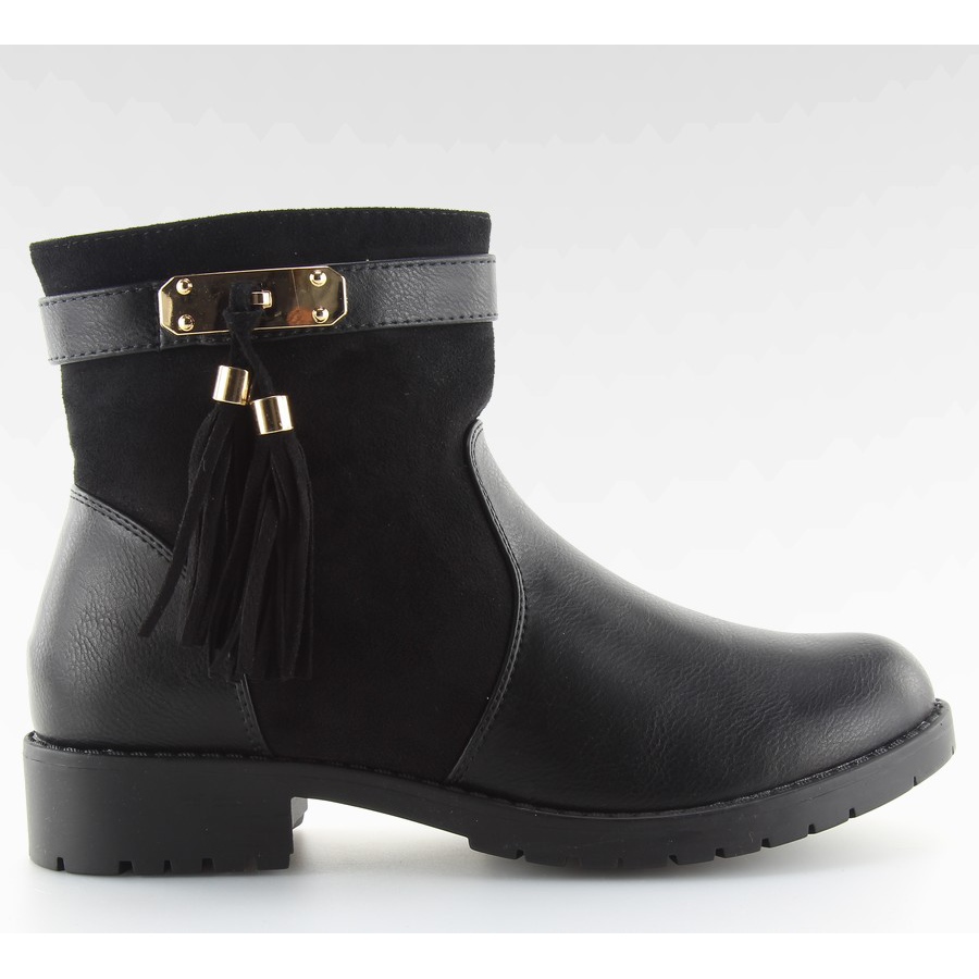 Introducing elegant black women's ankle boots Y8567 black - a great choice for the transitional season! These stylish shoes are distinguished by a beautiful combination of full-grain eco-leather and eco-suede, which gives them a unique character. A decorative strap with a gold detail and fringes gives them a tasteful look, perfect for various occasions.