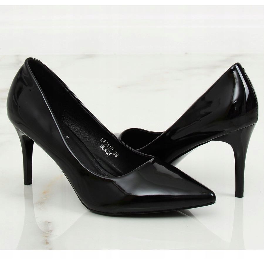 Women's black stilettos LE011P Black are a great choice for every woman who wants to combine elegance with everyday style. Classic stiletto pumps are distinguished by a unique patent finish, which gives them a unique shine and emphasizes their timeless style. With a delicate pointed toe and an 8 cm heel, these stilettos will wonderfully slim your legs, adding a bit of extravagance to every style.