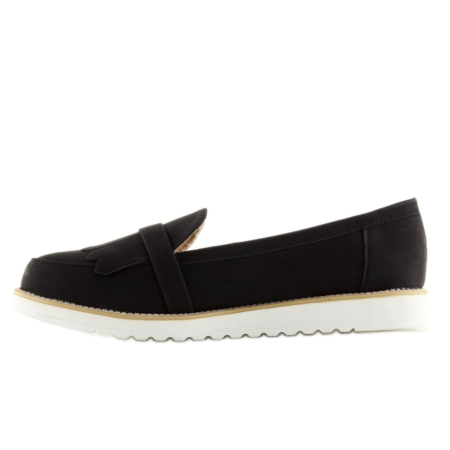 Women's black loafers 7210 Black are an ideal choice for women who value elegance and comfort. These stylish shoes with a high white sole perfectly fit into the latest trends. Classic black combined with a shimmering piping and a gold buckle give them a unique character that will allow you to stand out in any styling.