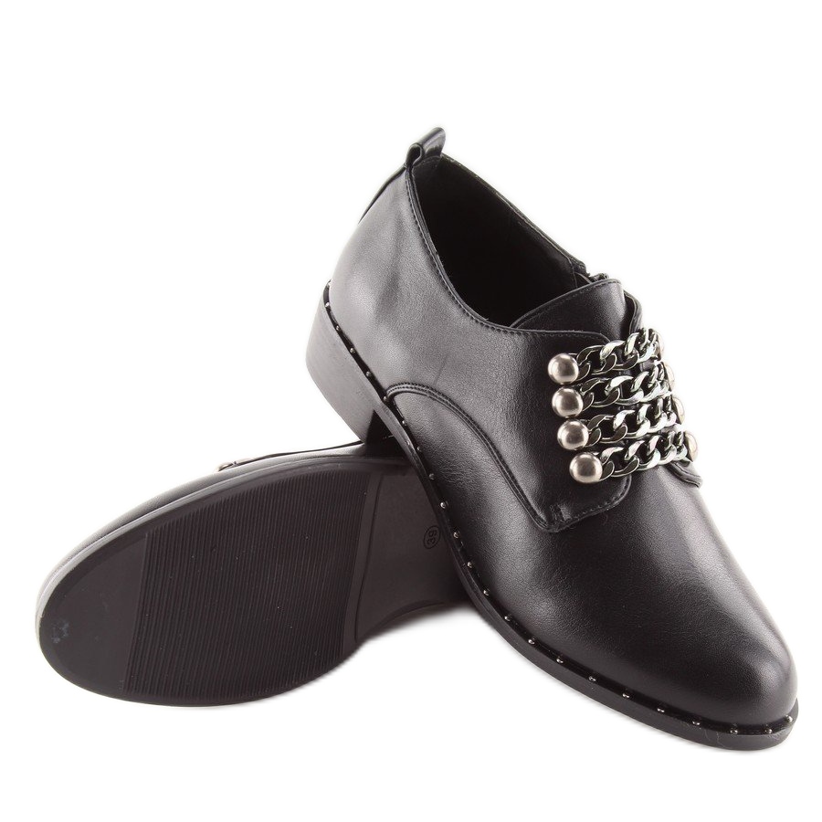 Black women's loafers C-7160 Black are a great choice for women who want to combine classic with a fashionable accent. These half-boots are distinguished by an elegant, yet unusual style that attracts attention. Decorative chain lacing adds originality, and the trim studded with small studs introduces a bit of madness to the classic design.