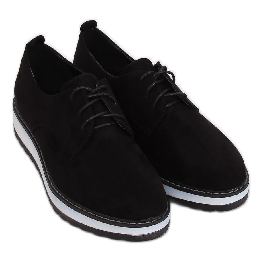 Black women's loafers C-7225 Black are the perfect choice for women who value a combination of elegance and comfort. This model is distinguished by lacing and a high white sole, which gives the whole a modern character. Contrasting elements and subtle stitching add a unique style to the loafers, making them a perfect complement to various styles.