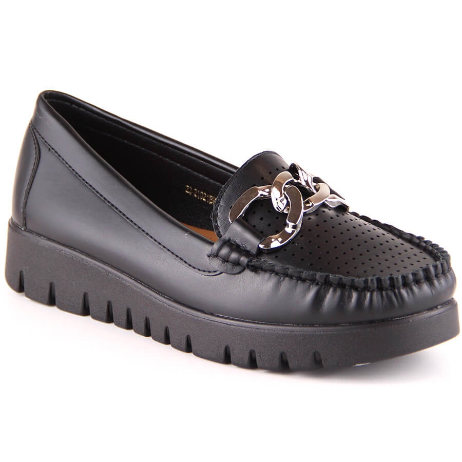 Discover a new definition of elegance and comfort with the Potocki YQ21021 women's platform loafers with chain. These unique shoes in classic black are a great choice for every modern woman who values style and comfort.