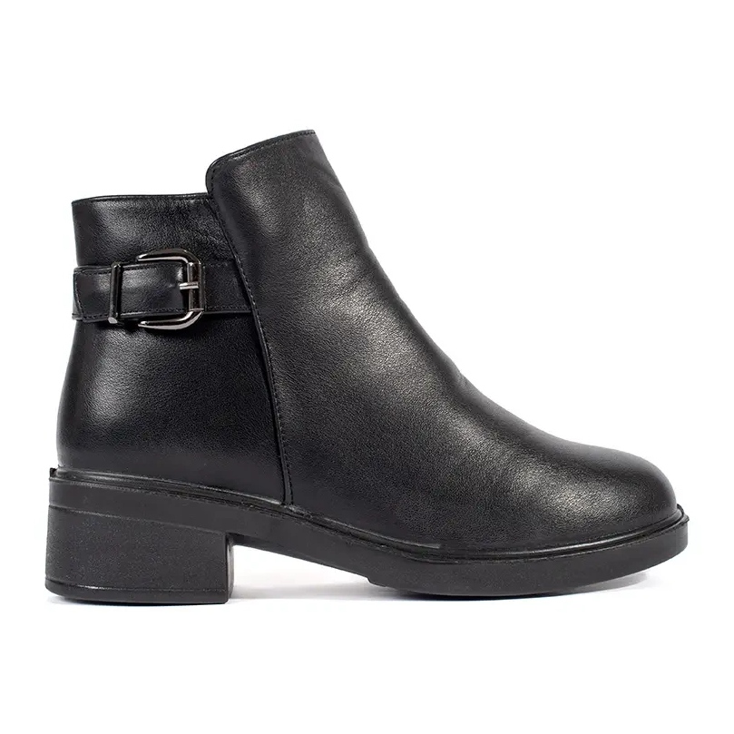 Inna marka Black women's low-heeled ankle boots with a decorative buckle