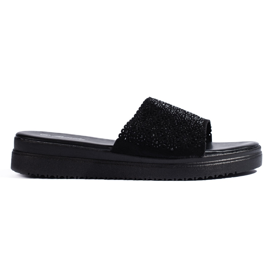 Made of high-quality eco-suede leather, with an openwork finish and subtle zircons, these flip-flops attract attention and add chic to any style. The open heel and slip-on fastening ensure comfort while the 4 cm platform guarantees adequate stability and comfort, so you can enjoy every step.