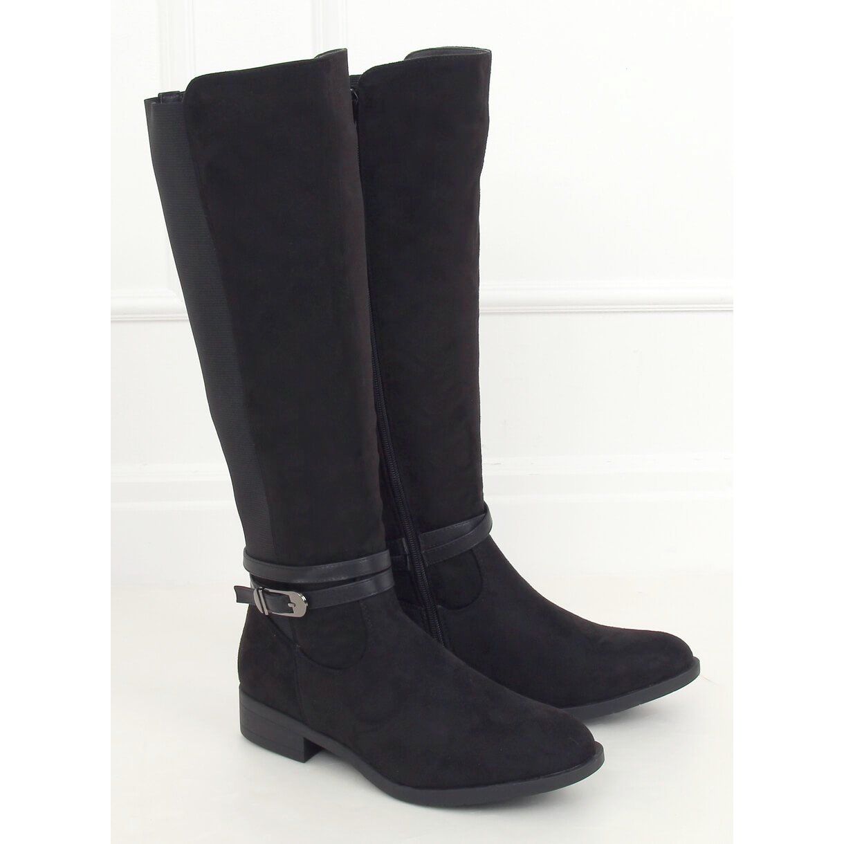 Black women's boots BJ1539-KB Black are the perfect choice for women who value a combination of elegance and comfort. These black boots with a flat heel are characterized by a minimalist style that fits perfectly into various everyday styles. The decorative buckle adds a subtle character, attracting attention and emphasizing the fashion aspect of the footwear.