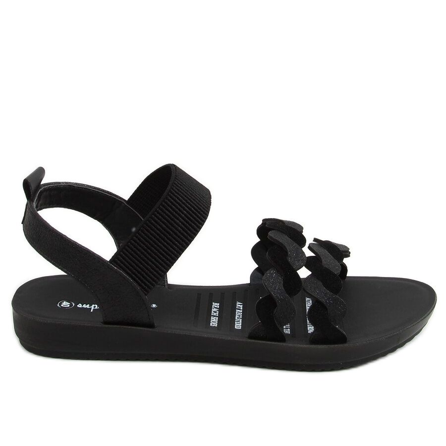 Discover elegance and comfort with the 446 Black women's black sandals. These stylish flat sandals are a perfect combination of minimalist design and modern accents. The braided design with shimmering straps adds a unique character to them, perfectly emphasizing the midfoot. Made of high-quality eco-leather and rubber, they provide comfort for all-day wear, making them an ideal choice for everyday wear.