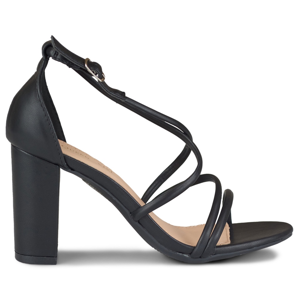 ISAN sandals are a timeless, classic model in a universal black color, made of high quality ecological leather. A stable 9 cm high post adds a feminine character, and at the same time provides greater comfort than a thin pin. The model has an open nose and an adjustable buckle fastener, which makes it easier to fit to the foot. The insert is also made of ecological leather and a synthetic plastic sole.