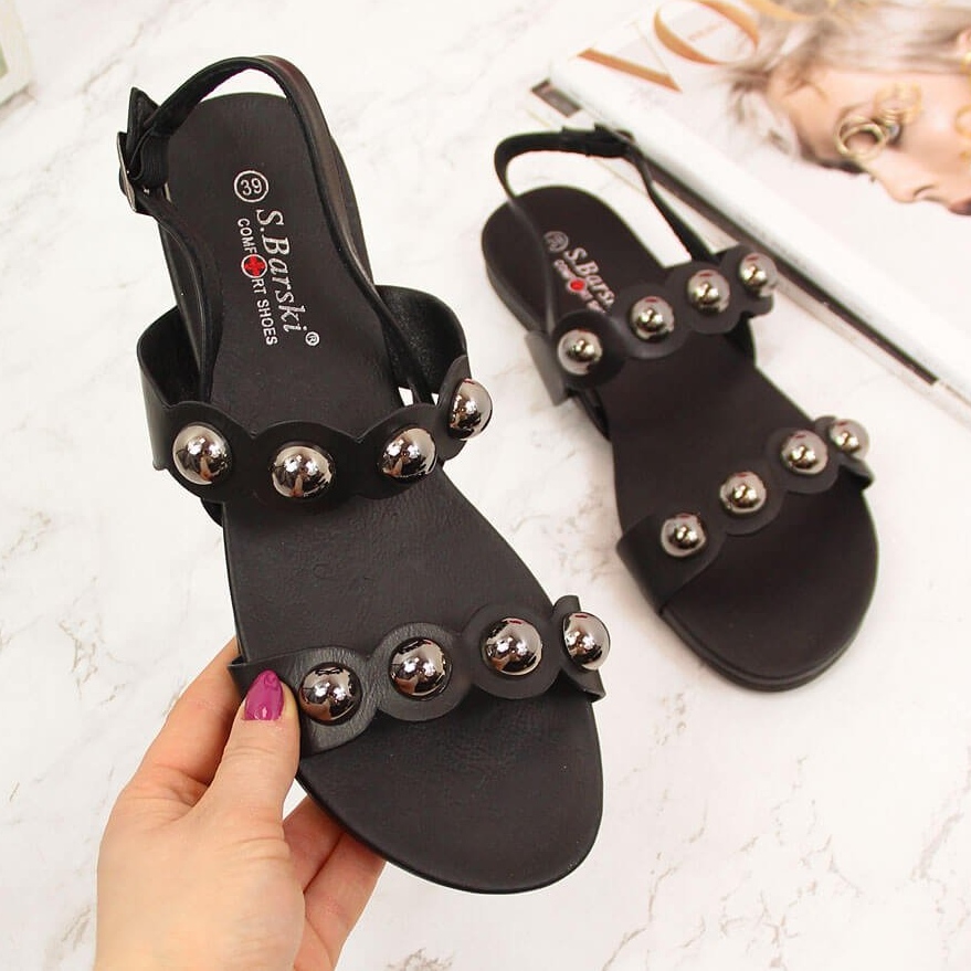 Women's sandals with rivets black S.Barski are an excellent offer from the renowned brand S.Barski, which combines style, elegance and comfort. Thanks to the innovative COMFORT SHOES system, the sandals offer an exceptionally soft insole, which makes them ideal for all-day use.
