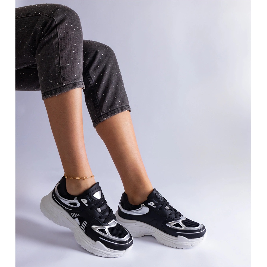 Inna marka Black women's sneakers with silver inserts
