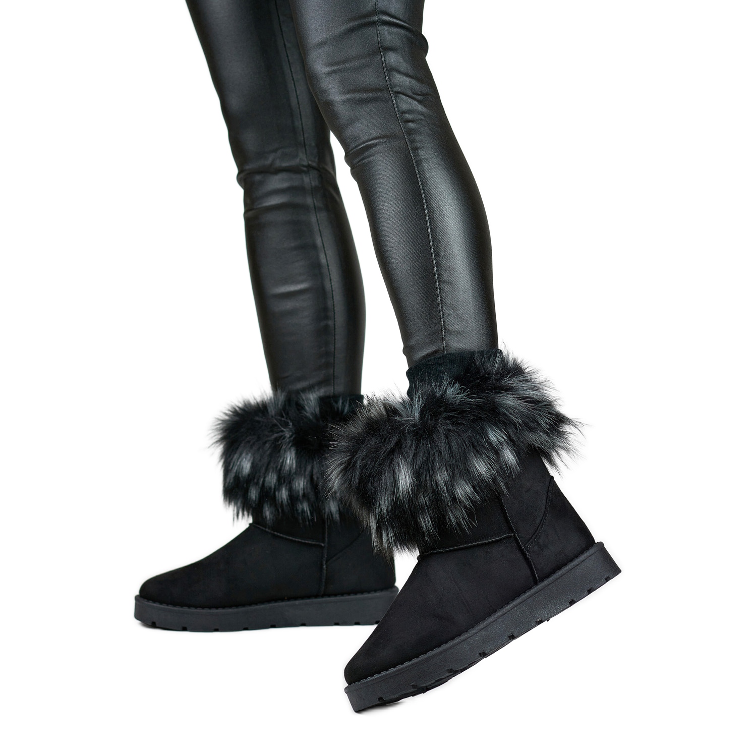 Inna marka Black women's snow boots with fur, winter shoes for winter
