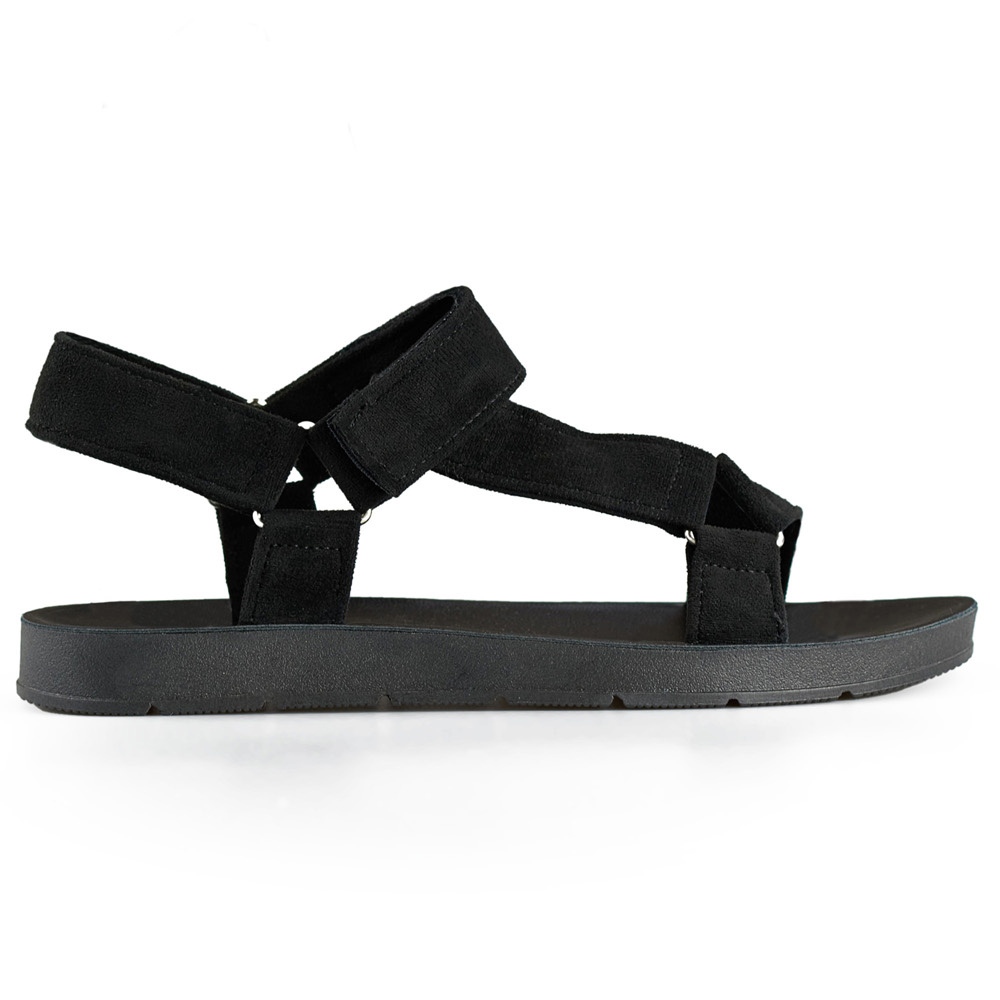 Black sports women's sandals fastened with Velcro are the perfect choice for women who value comfort and fashionable appearance. Made of high quality ecological suede, these sandals combine modern style with functionality, thanks to which they are great for both every day and during summer outdoor trips.