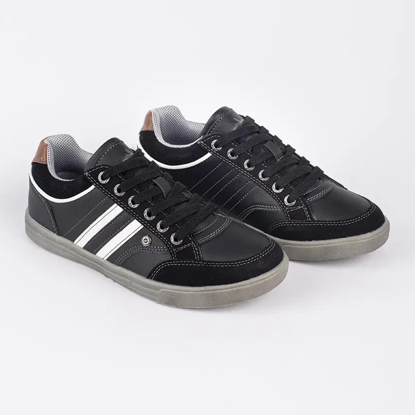 The sole with a tread made of plastic provides adhesion, and the classic black color with white accents makes the shoes universal and easy to combine with other wardrobe items.