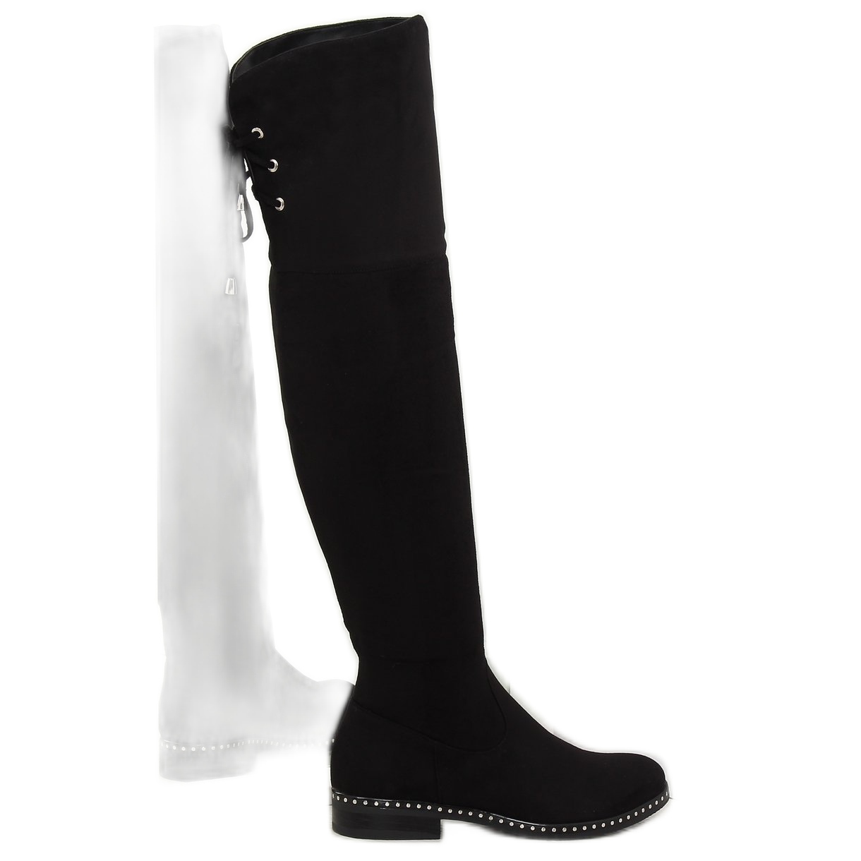 Women's black over the knee boots 7538-PG Black are the perfect choice for women looking for a combination of style and comfort. These elegant flat boots are distinguished by a classic design that will never go out of fashion. The high upper reaching below the knee, made of ecological suede, perfectly emphasizes the figure, while providing exceptional comfort of wearing.