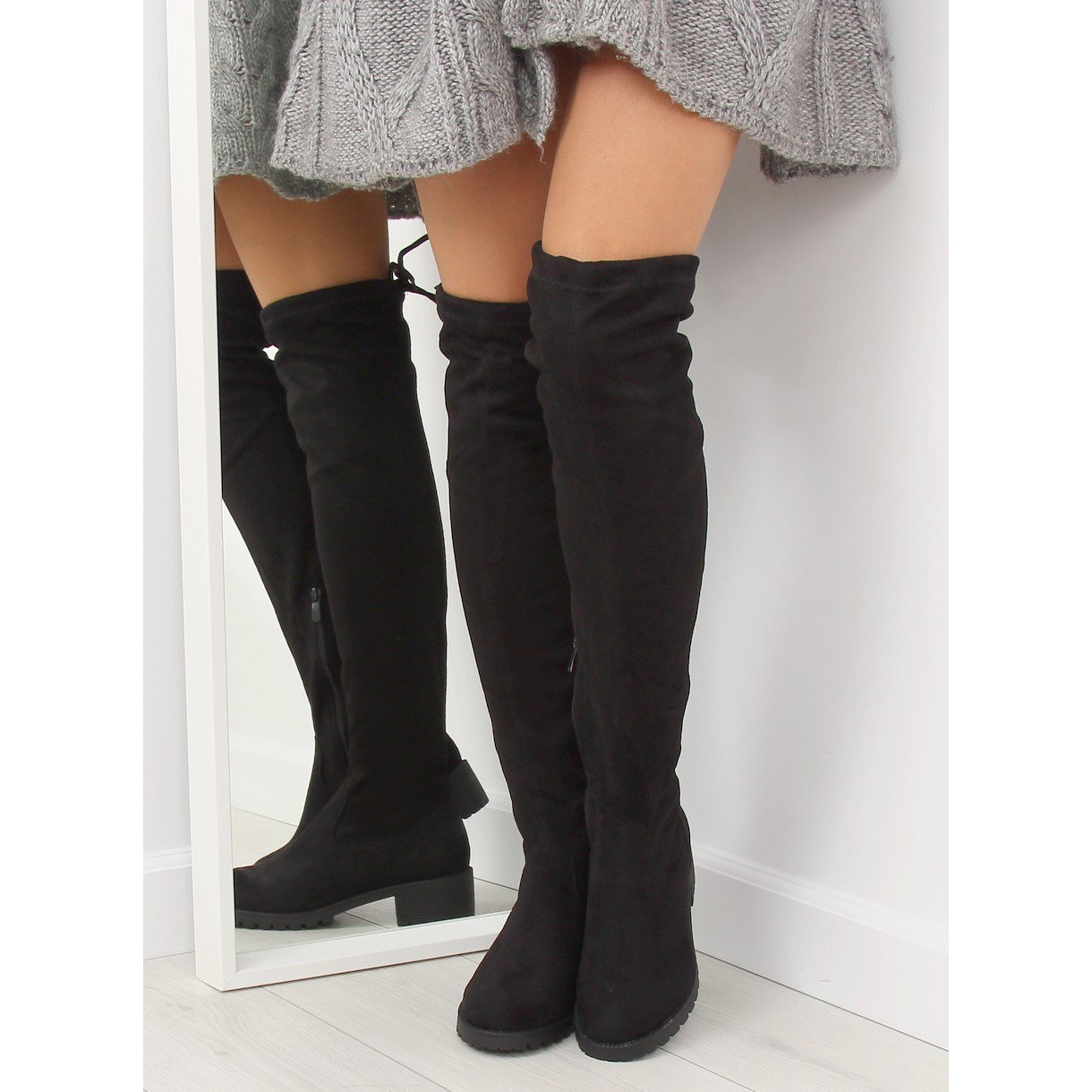 Women's black over the knee boots NS013 Black are the perfect choice for any woman who wants to combine elegance with comfort. These classic boots made of high-quality ecological suede look extremely stylish, and their high upper perfectly slims the legs, giving the silhouette lightness.