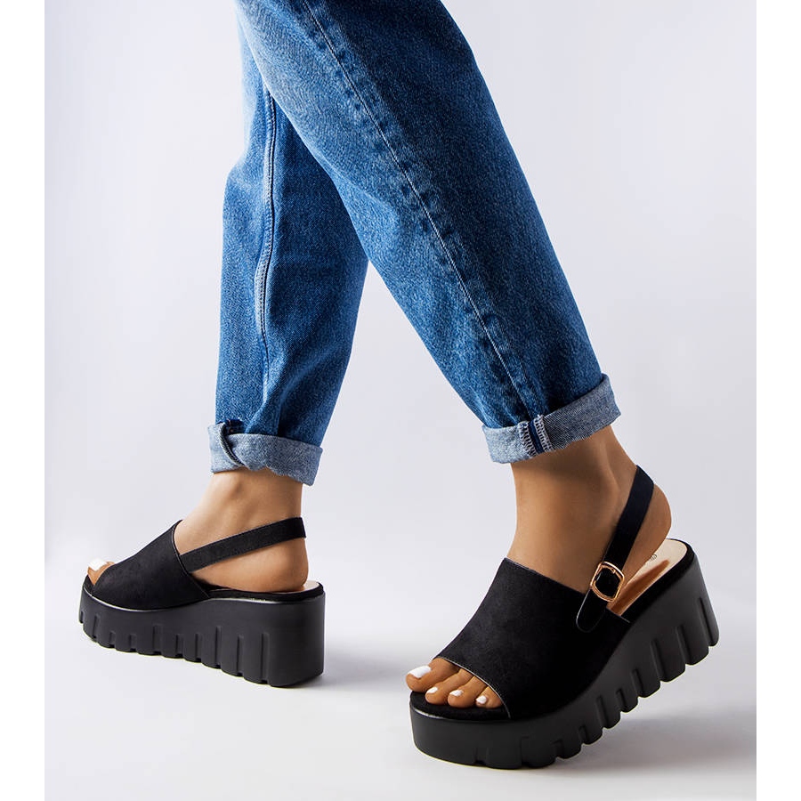Made of high-quality ecological suede leather, these wedge sandals not only provide durability, but also retain their elegant appearance for a long time. The black rubber sole is sturdy and flexible, providing traction and safety with every step. The design without additional patterns in classic black is timeless and easy to match to any type of wardrobe, which makes this model extremely universal.