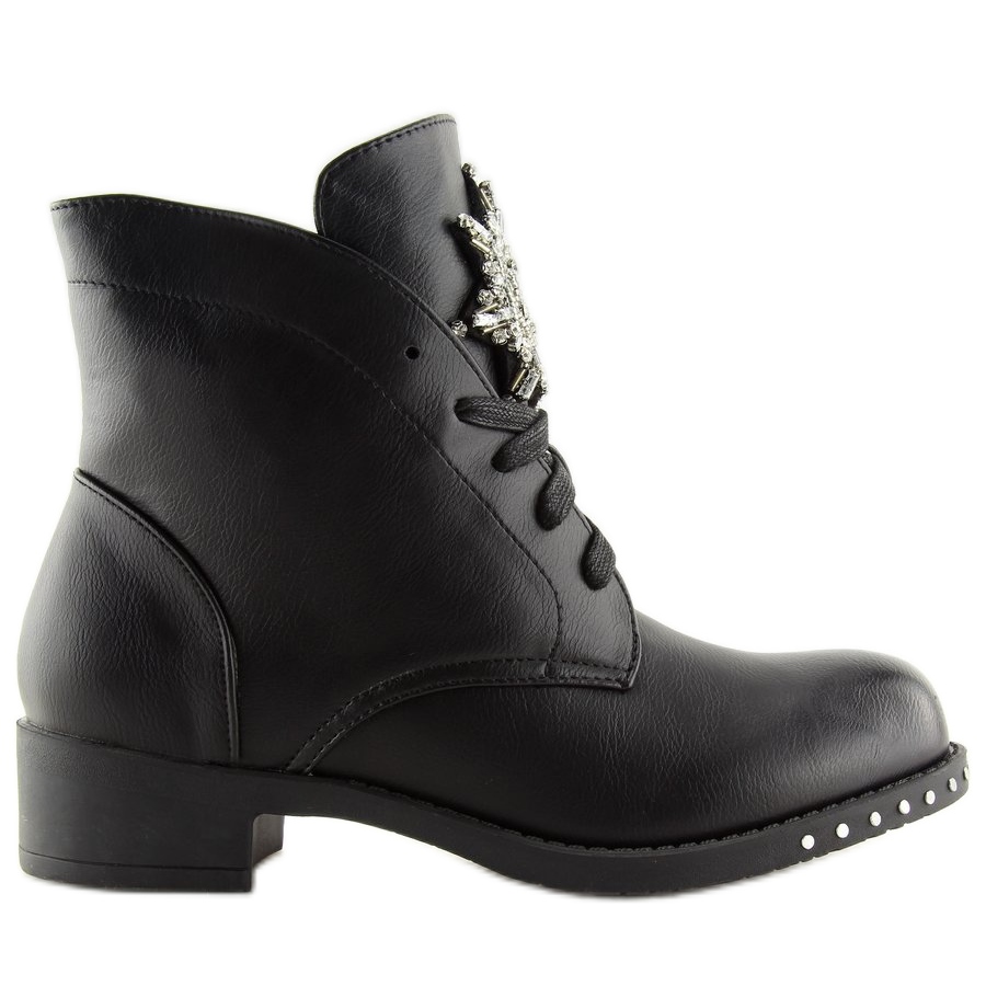Enhance your wardrobe with unique lace-up women's ankle boots - workers in an elegant black color. The 100-902BO-1 Black model is a combination of style and comfort that will certainly attract attention. The characteristic lining with decorative rivets and an effective tongue, studded with shiny stones, make these workers stand out from the crowd.