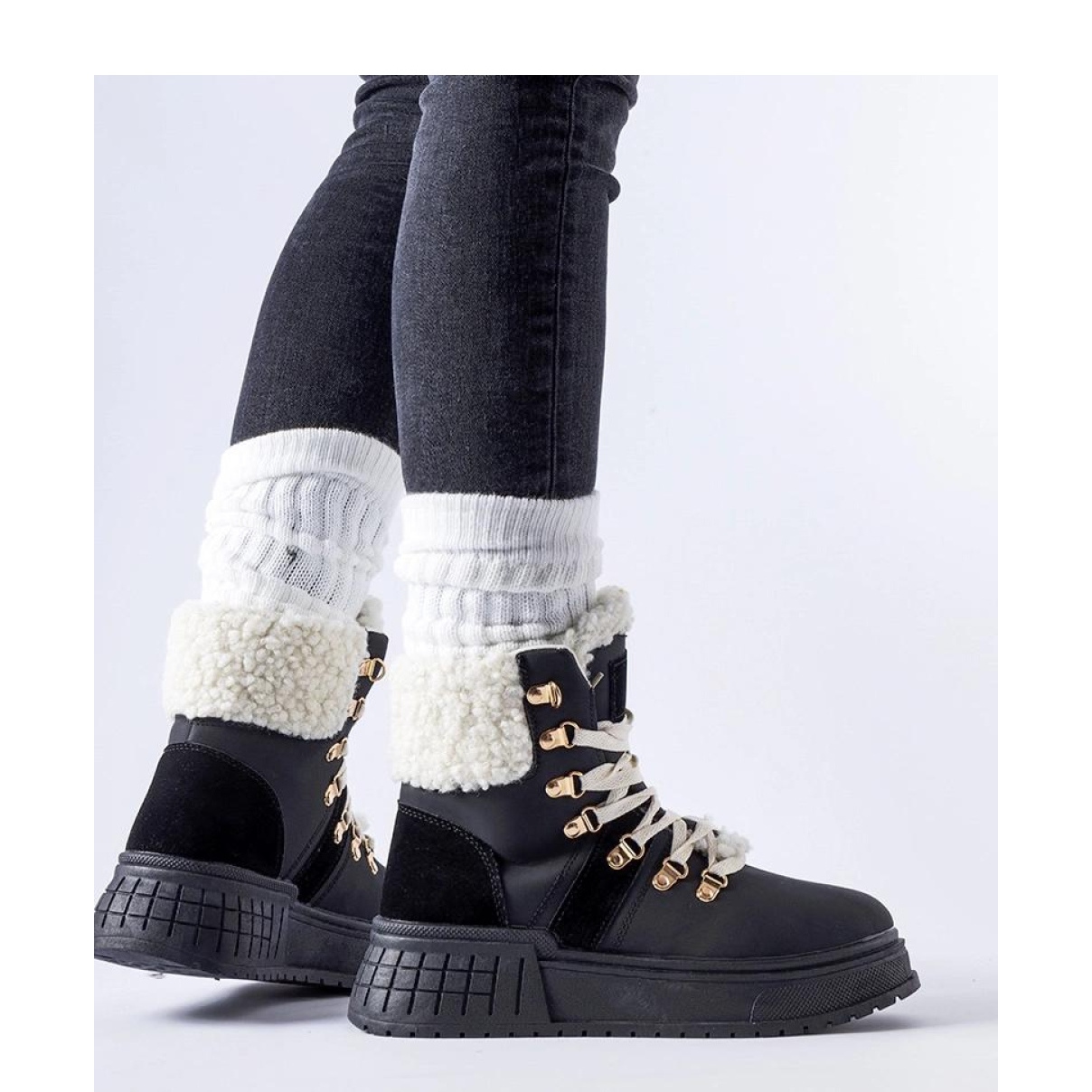 Black workers on a massive platform are a fashionable and functional choice for every woman who wants to combine style with comfort. These boots, made of high quality ecological leather, look elegant and modern. Their lace -up model allows for a perfect fit to the foot, and a 5 cm rubber sole provides excellent grip on various surfaces.