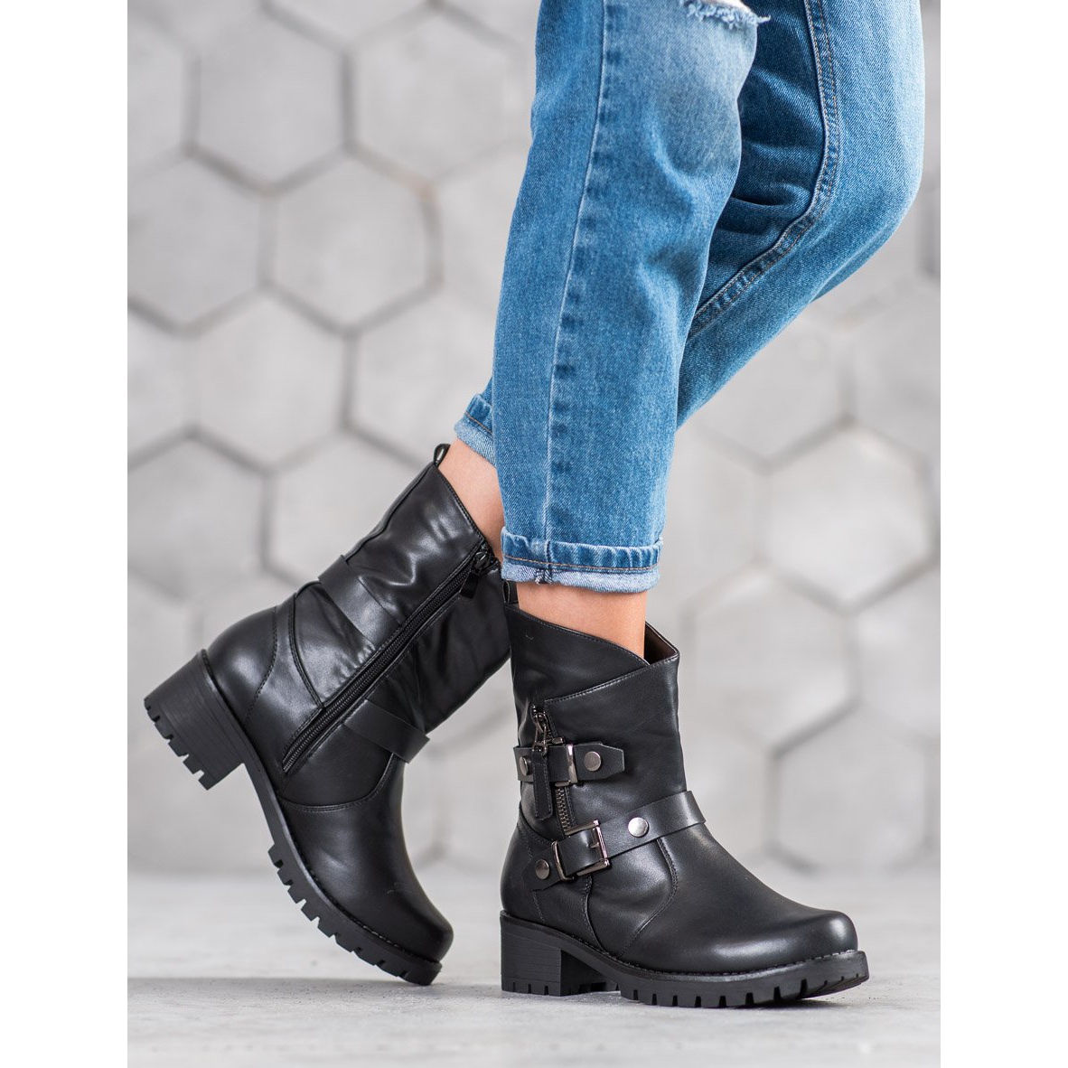 The solid sole with tread guarantees stability and grip when walking, making them an ideal choice for everyday wear. Decorative buckles add character, and the rock style makes the workers fit perfectly into the latest fashion trends. The buckle and zipper fastening makes it easy to put on and take off the shoes.