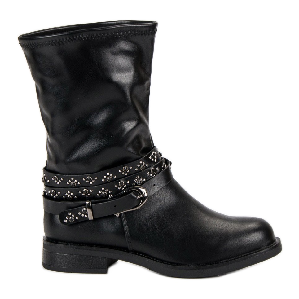 Black work boots are a universal accessory that goes perfectly with both casual and more elegant styles. Decorated with decorative straps with rhinestones and a distinctive buckle, they attract attention and give each style a unique character.
