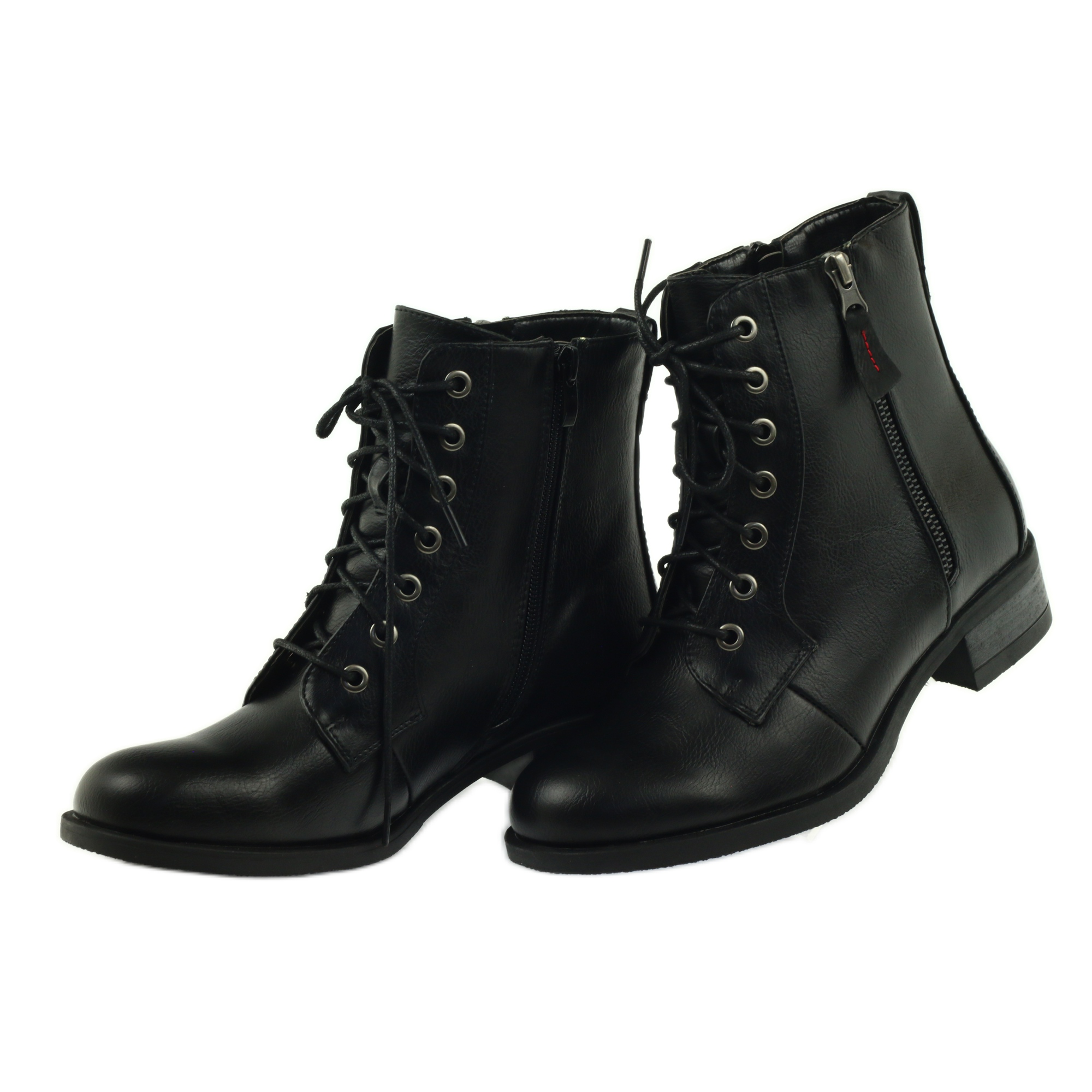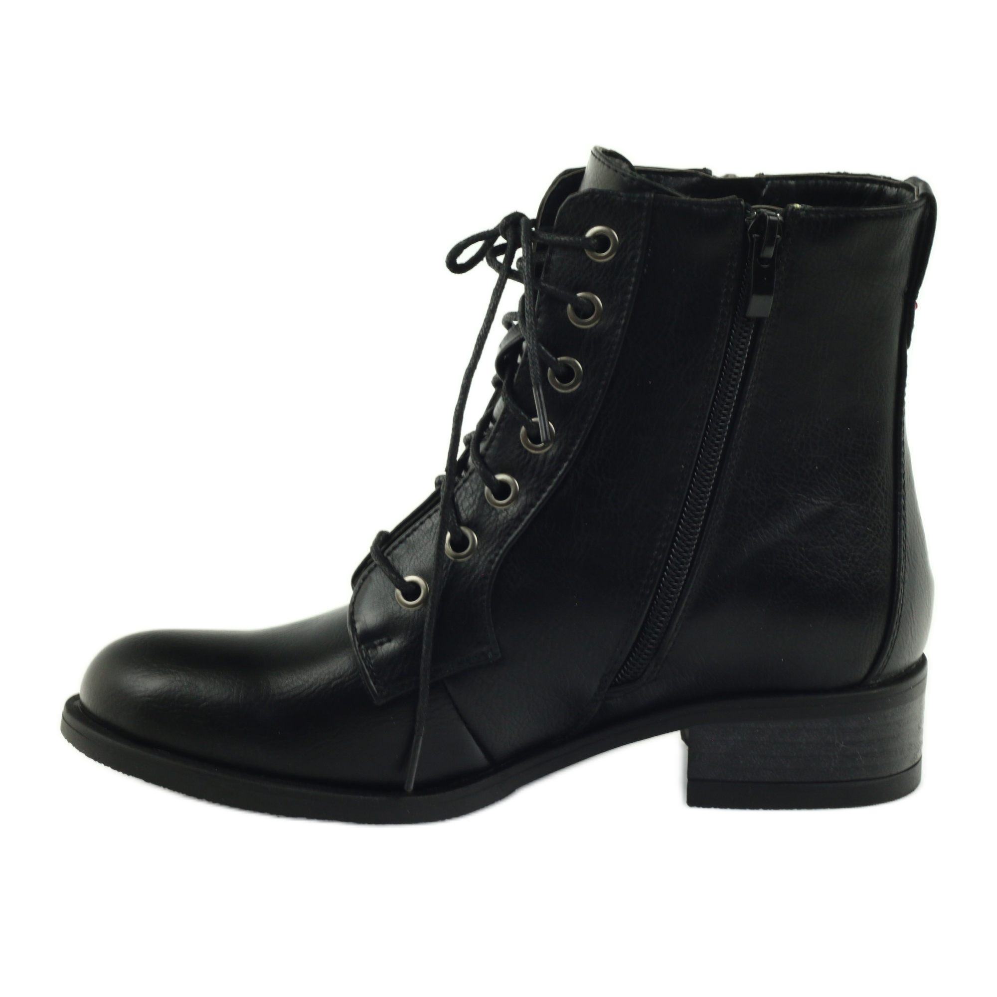 Worker black trappers with zipper M.Daszyński SA94 are a great choice for women who value style and comfort in everyday use. These fashionable ankle boots made of high-quality ecological leather guarantee not only an aesthetic appearance, but also durability and safety. The interior of the shoes is insulated with footwear fleece, which ensures thermal comfort even on colder days.