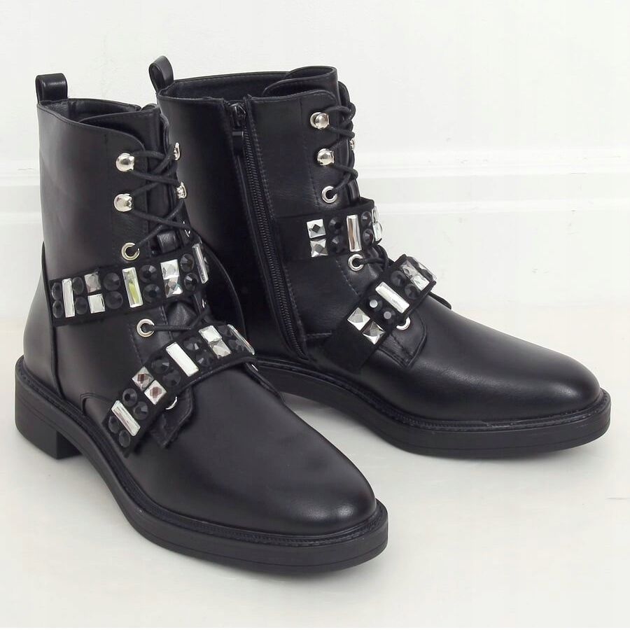 Discover a unique style with the black BH307 Black work boots from a renowned brand that perfectly combine fashion with comfort. These smooth women's ankle boots with a flat heel are the perfect choice for women who want to stand out from the crowd. Their minimalist, yet effective style is enhanced by straps studded with shiny stones, which add character and make you a real star of the style.