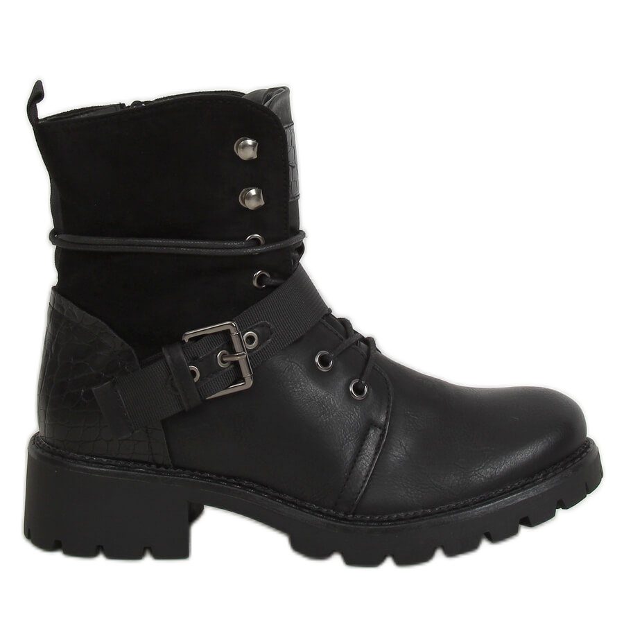 Discover the latest footwear trend with the 1215-PA Black worker boots, which perfectly match current styles! These lace-up women's boots are the perfect choice for women who value fashion and comfort. Their appearance attracts attention thanks to the inserts imitating snake skin, which gives them an original character.