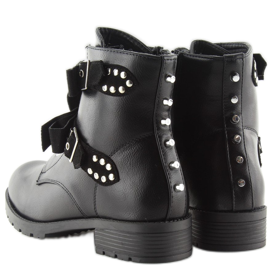 Inna marka Black workery boots with black studs