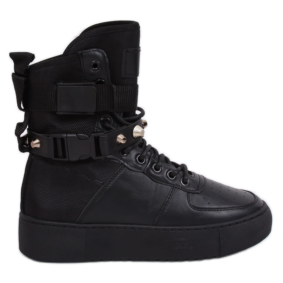 Y-025 Black sports shoes have a high upper that reaches above the ankle, providing additional support. Their design is based on a high sole, which is not only a trend in the current season, but also provides excellent cushioning.