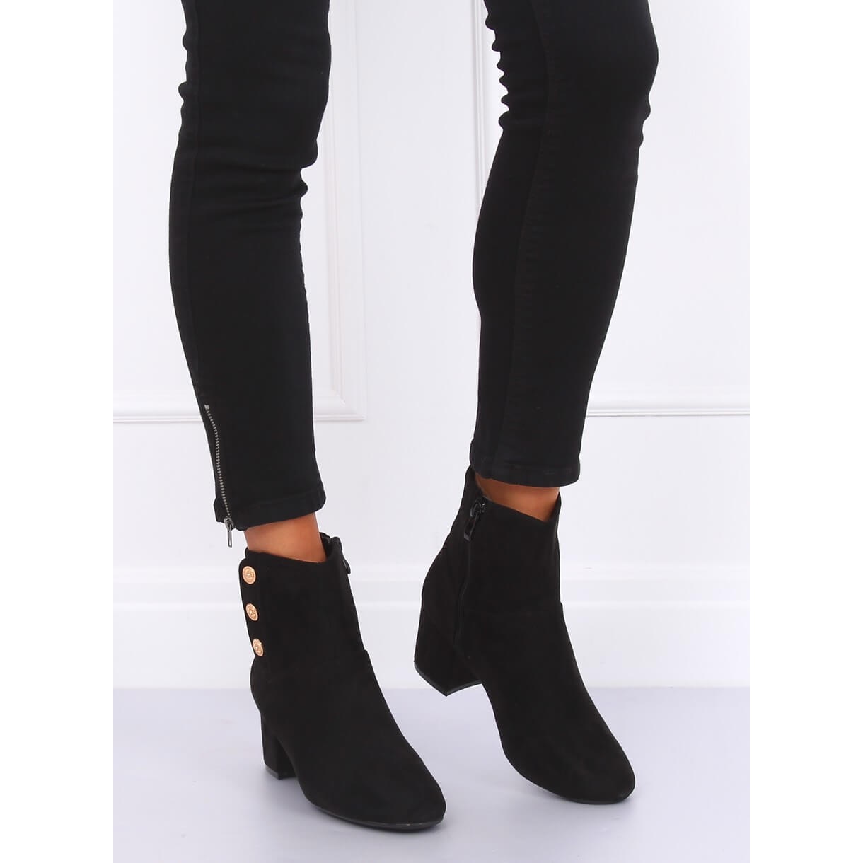 Black YL51 Black heeled ankle boots are the perfect choice for every woman who values elegance and comfort in everyday use. Made of high-quality ecological suede, these classic ankle boots impress with their simplicity and subtle details, such as decorative gold buttons placed on the side of the upper.