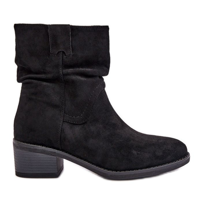 Details: Black Zinanya Insulated Women's Ankle Boots With a Ruched Upper Low Heel