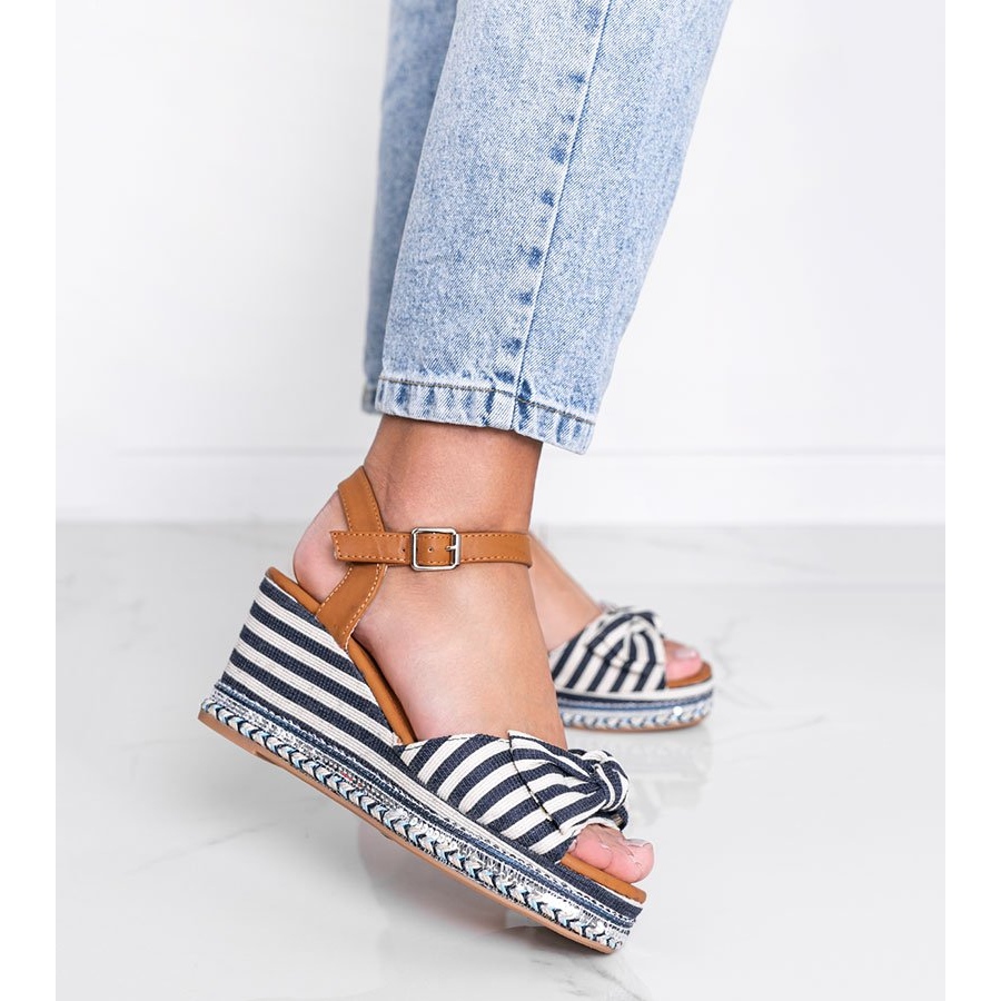 Discover the charm of summer with the Dulce wedge sandals in blue and white! This is a unique model that combines classic design with fashionable accents. The upper is decorated with an interesting striped pattern and shiny sequins, and the subtle bow adds finesse to the whole. These sandals not only attract attention, but also perfectly complement any summer styling.