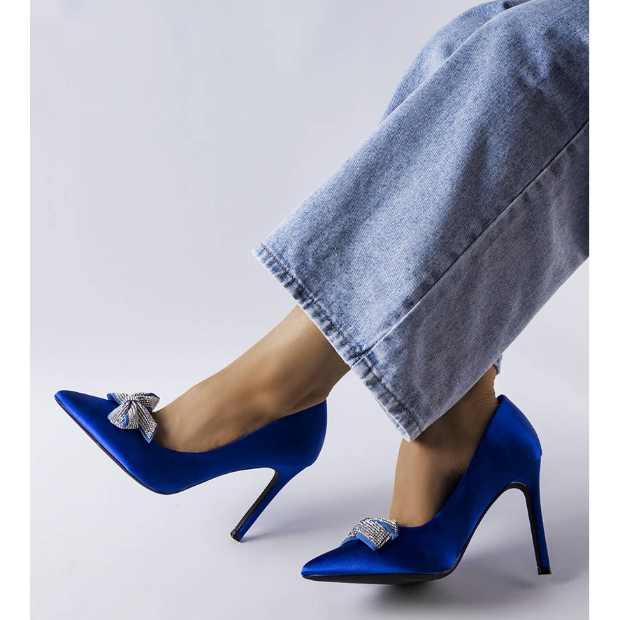 Discover elegance and style in blue satin-finished Mia high heels with a bow from Buty Gemre. These unique pumps are the perfect choice for women looking for a combination of comfort and sophisticated aesthetics.