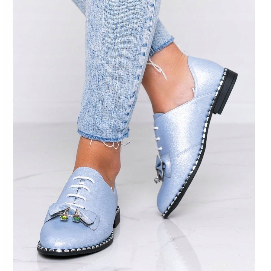 We present the blue shiny Lost Stars bow shoes, perfect for every fashionable woman who wants to add a bit of shine to her styling. These unique shoes have been carefully crafted from high-quality eco-leather, which not only attracts attention with a delicate shine, but also demonstrates great durability and comfort of wearing.