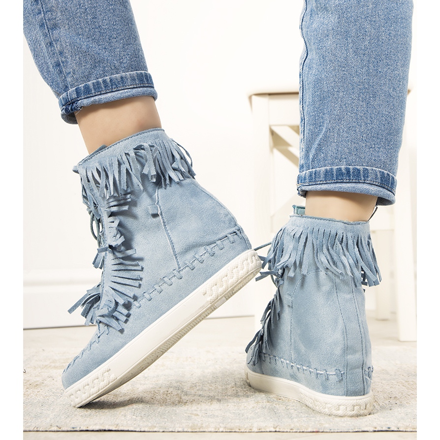 Discover the boho style with the blue Dias platform sneakers! These unique ankle boots combine fashionable design and comfort that you will appreciate every day. Made of high-quality suede eco-leather in a charming blue shade, they perfectly fit into the latest trends in footwear.
