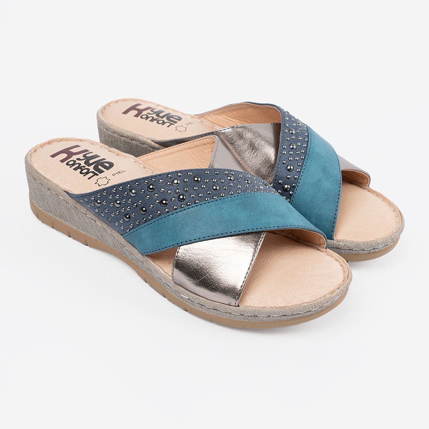 Made of high -quality skin imitación, both the top and the inner part, guarantee not only fashionable appearance, but also comfort throughout the day. The open heel and the lack of a nose are details that add lightness and breathability, and silver studs give the flaps a modern character.