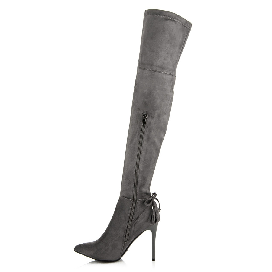 The height of the upper above the knee and the round toe are features that will provide exceptional comfort while emphasizing the feminine advantages of the figure. The 9 cm heel adds elegance, and the stiletto makes every step a pleasure. The boots are not insulated, which makes them an ideal choice for spring and autumn.