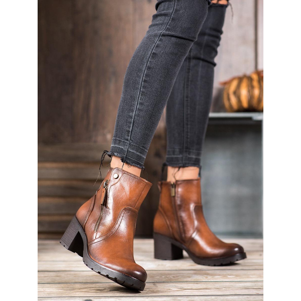Add a touch of style to your fall wardrobe with these extraordinary SHELOVET zip-up ankle boots. Their warm, brown colour perfectly matches current trends, while making these shoes incredibly versatile – they match a variety of styles, both casual and more elegant.