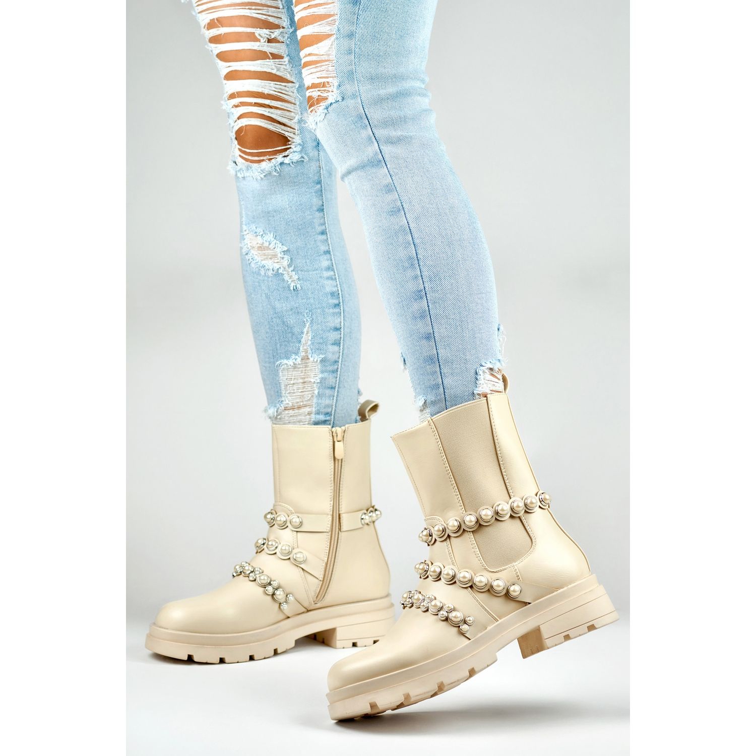 The unique accent of these boots are subtle decorations in the form of pearls, which give them a unique character. Regardless of whether you are going for a special occasion or just you want to complement your daily wardrobe, these boots will be the perfect choice.
